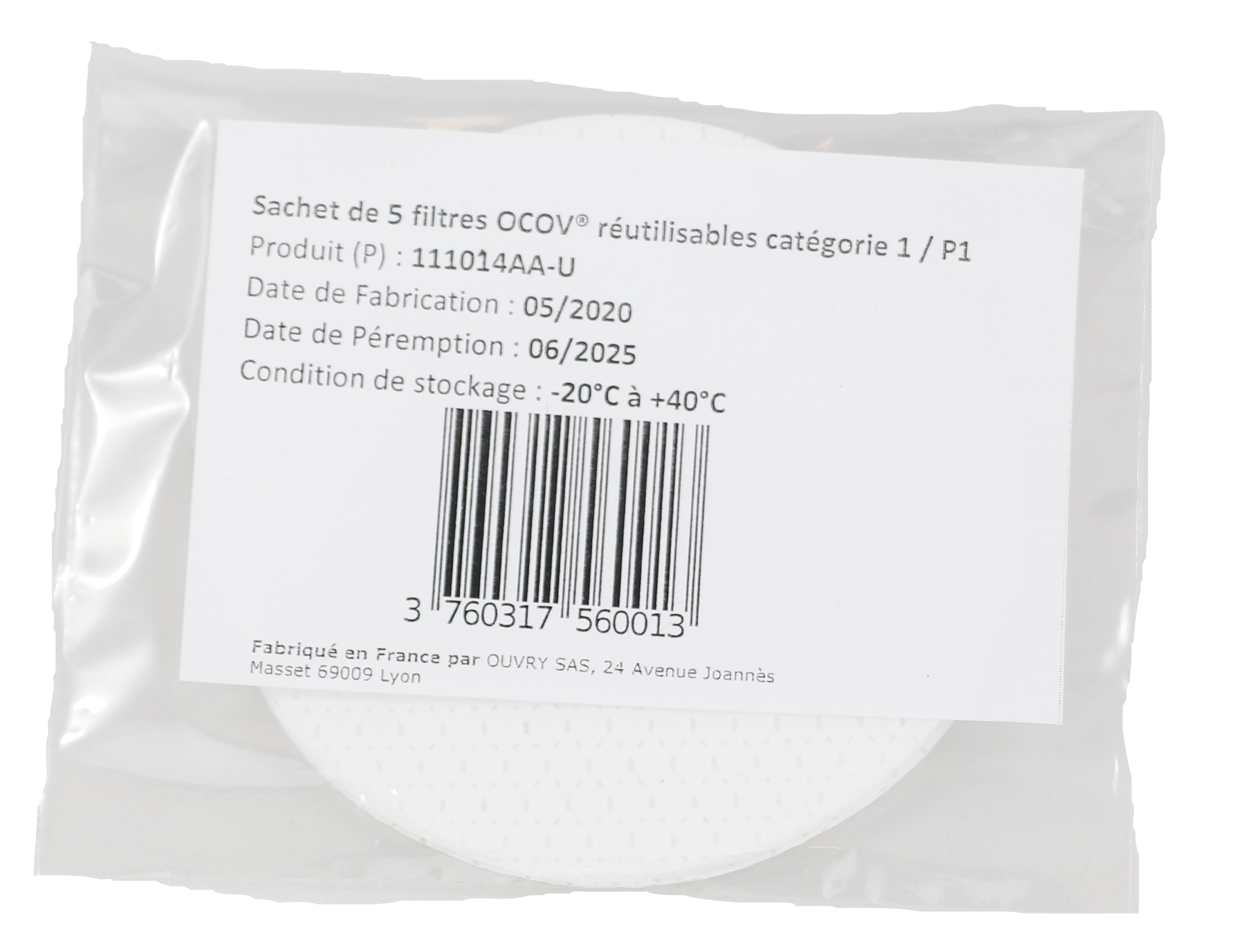 - Lot de 5 filtres remplaçables désinfectables et réutilisables pour le masque réutilisable OCOV®
